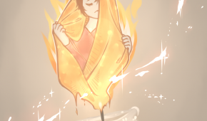 Tecknad bild på kvinnas mage, underliv och ben med en stålgalge över och ett ett blodigt förbudstecken på